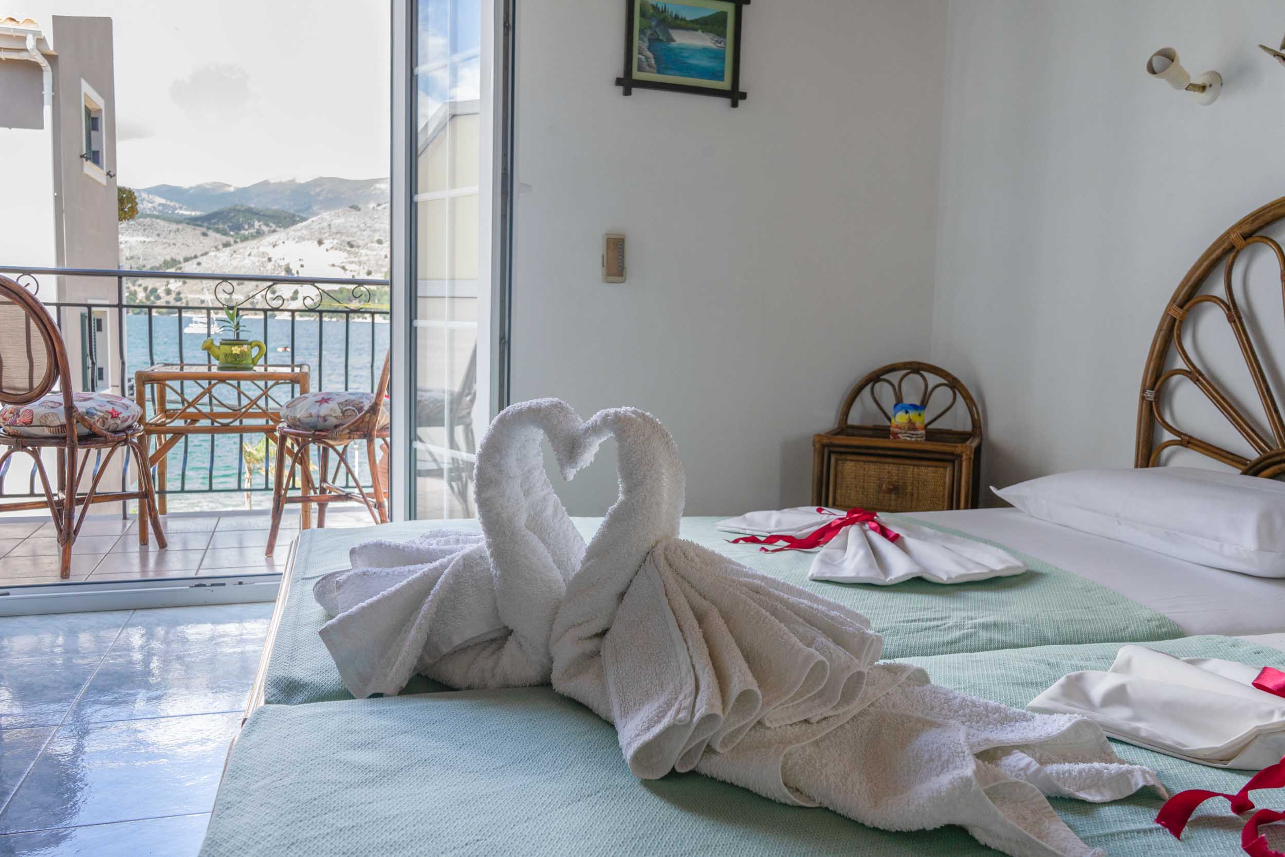 At “Marina Studios I” we provide the warm hospitality you need so that you can enjoy carefree holidays in Argostoli. We’re located by the town’s waterfront in a lush and quiet neighborhood, glowing under the bright light of sunrise or the glimmering colours of sunset. You can admire the scenery endlessly, since all apartments have their own balcony, with a fantastic view of the sea or you can relax by the wide porch above our back garden. The town’s center is only a seven-minute walk from the studios and there you can find cafés, bars, restaurants and enjoy the town’s nightlife. Come visit, we’re expecting you!
